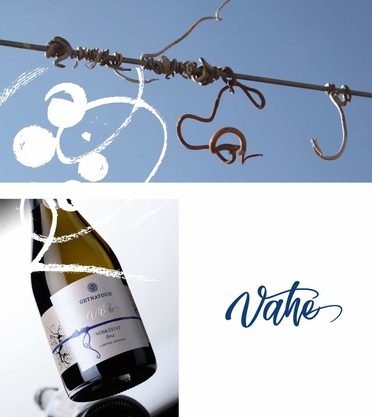 Packaging design and visual identity of the new champagne-style wine by Getnatoun Winery.